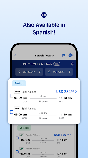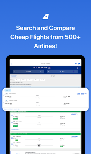 The app features an intuitive design, making it easy for users to search and compare flights quickly.
