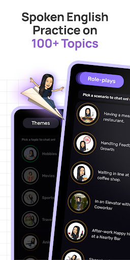 The app provides diverse content ranging from travel to business, helping users practice different speaking skills.