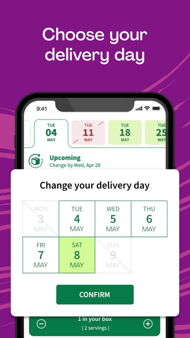 The app seamlessly integrates with the company's logistics system to provide real-time updates on delivery status, ensuring users know exactly when their fresh ingredients arrive. Ingredients are packed thoughtfully to preserve freshness and reduce waste, with order summaries allowing users to verify what's included. The app also allows users to customize their boxes — for instance, swapping out proteins or adjusting serving sizes — giving a sense of control over each box, akin to having a personal grocery shopper meticulously selecting ingredients for their kitchen.