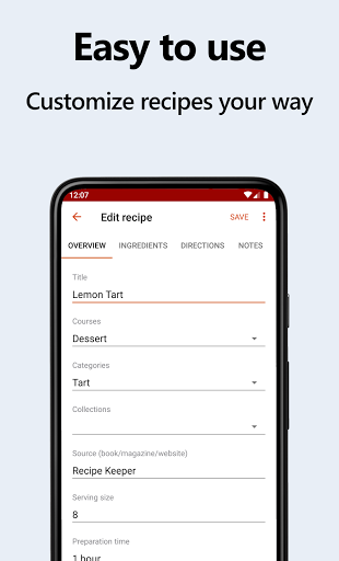 Allows users to save and categorize an unlimited number of recipes with easy editing options.