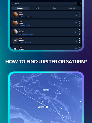 - Deep Dive into Celestial Objects: Explore detailed information, striking images, and even AR views of planets, stars, constellations, and other celestial bodies, enriching your knowledge with every glance.