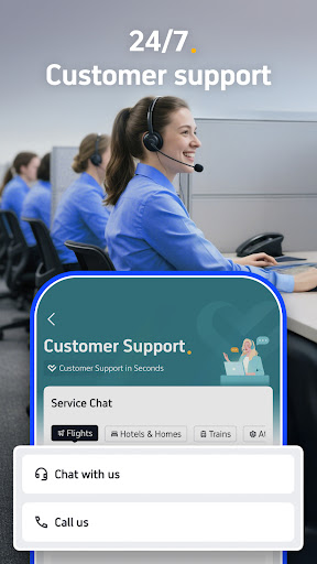 24/7 customer service via chat or phone assists users promptly with booking or travel inquiries.