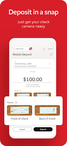 - Mobile Deposit & Payments: Deposit checks simply by snapping photos and make quick payments or split bills with integrated Zelle® and Bill Pay features.