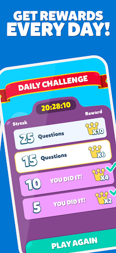 The app boasts a bright, colorful interface that feels inviting rather than overwhelming, like walking into a playful trivia carnival. Navigation is intuitive, with clearly labeled buttons and smooth transitions that make the gameplay feel fluid—imagine gliding effortlessly along a well-laid road rather than wandering through a tangled maze. The learning curve is gentle; new players quickly grasp the basics, while seasoned trivia buffs can appreciate the strategic depth and variety in question types. The game's responsiveness is commendable, with minimal lag, further enhancing the enjoyment.
